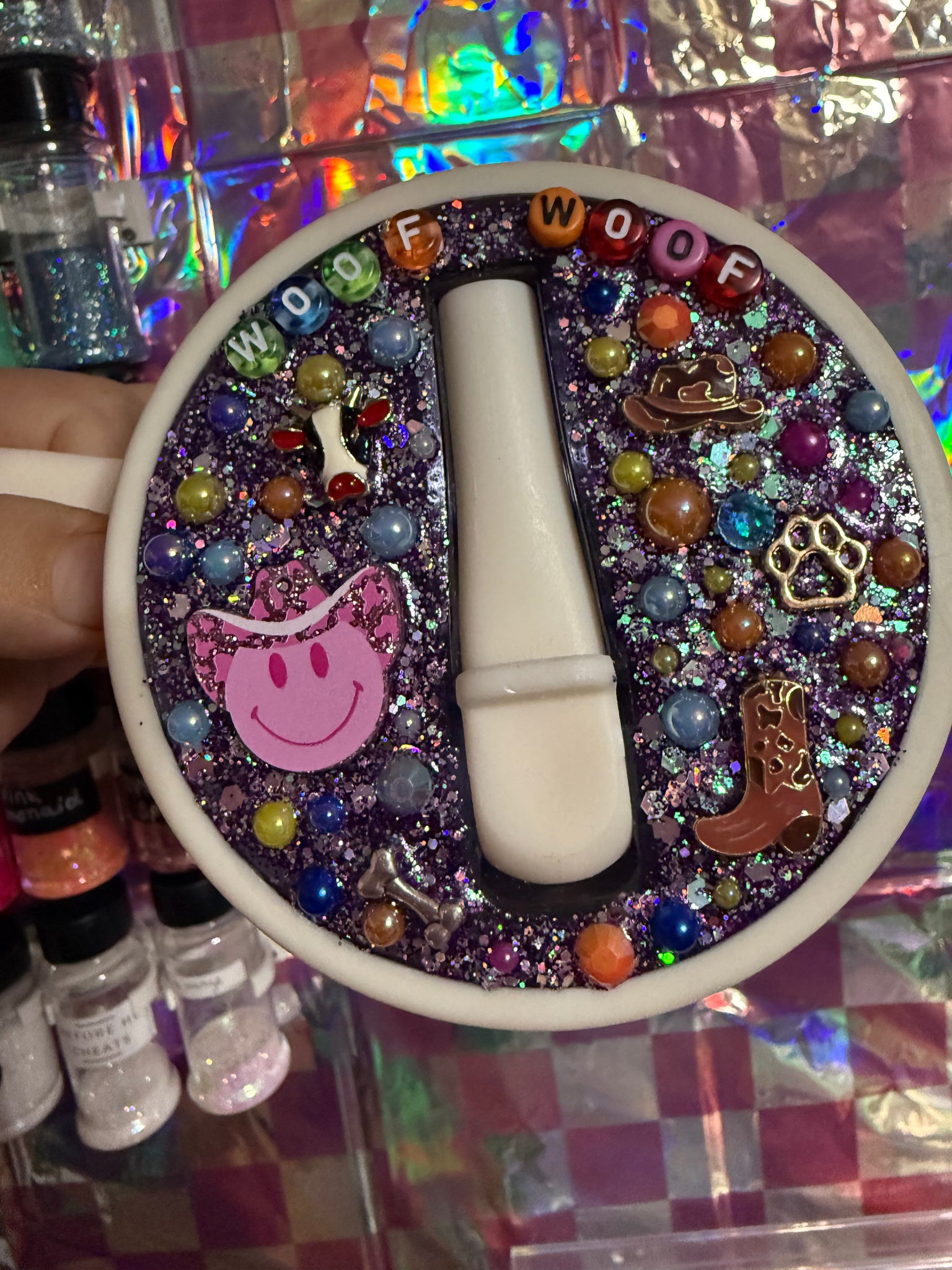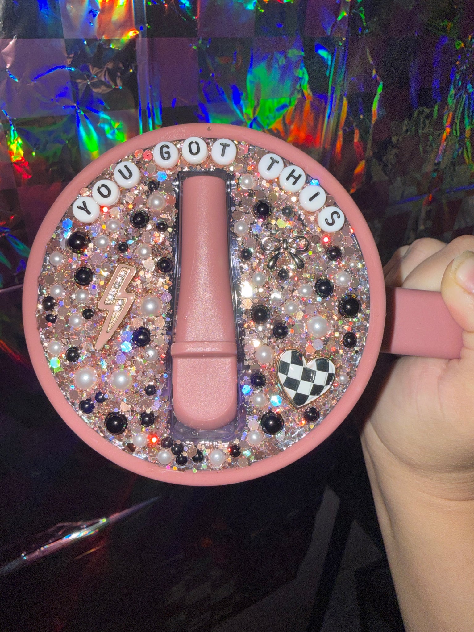 Welcome to a new era of cups! You’ll love it here. Who doesn’t like having a blinged out tumbler!? Lid is fully customizable, you choose your wrap design, glitter , pearls, whole 9!